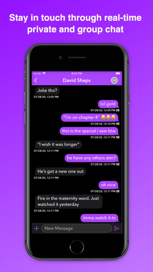 Stay in touch with friends through real-time private chat or start a group chat with literally as many people as you want.