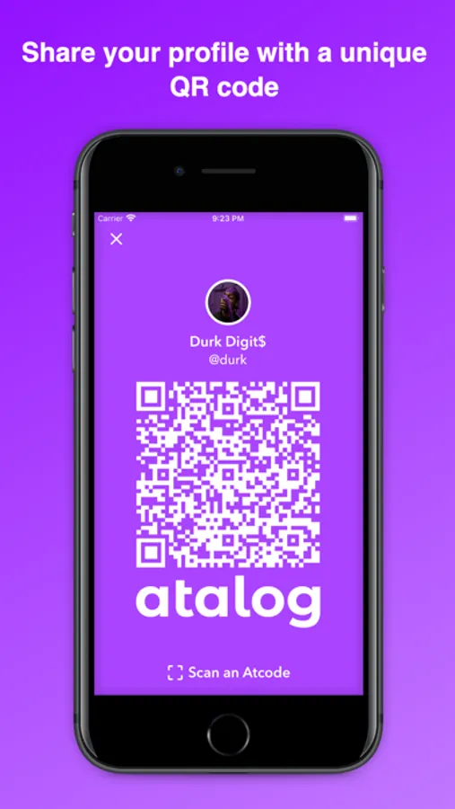 Find your friends' profiles by username or QR code. Follow them to add them to your Atalog contact list and always have their up-to-date info. Atalog also integrates seamlessly with your phone’s contact list so your friends using the app might already be on your Atalog contact list! (Please note: We do NOT store your phone’s contact list on our servers.)