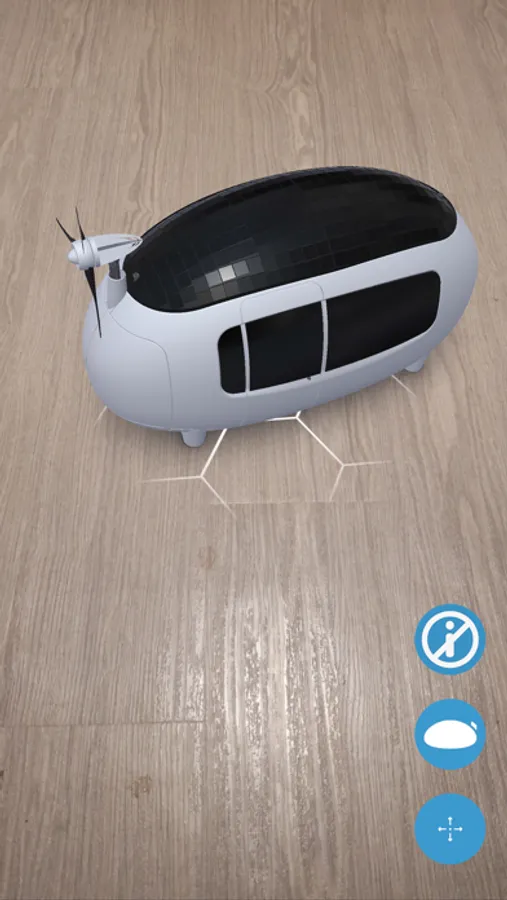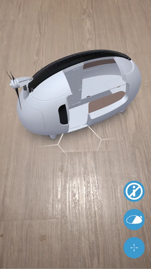 The app offers two modes. The first mode lets you place a small virtual 3D Ecocapsule model anywhere you want and explore it. You can turn the model around, peak inside or zoom in and out.