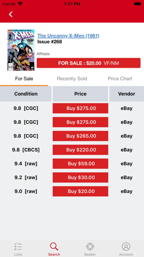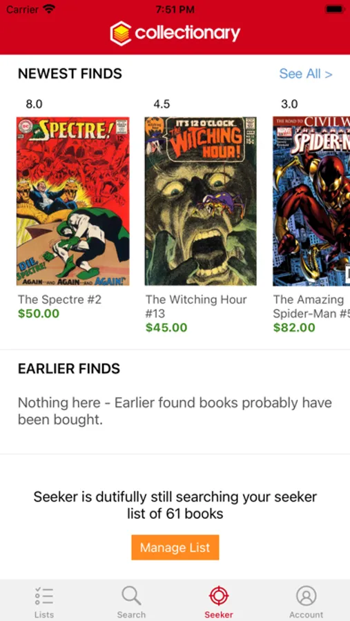 • Use the new "SEEKER" feature to get notified when the book you're looking for — at the Price & Grade you seek — posts on eBay!