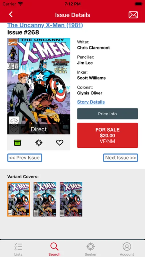• View full screen cover images, creator credits, as well as plot lines and character appearances, when available