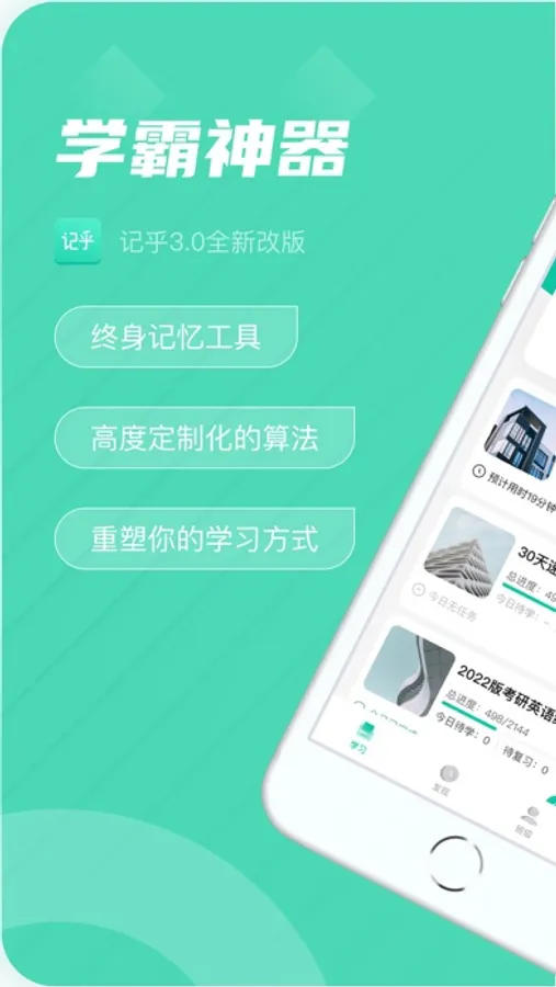 通过科学的记忆算法自动安排学习和复习,简单高效的提升记忆学习效果!不论您要学习什么,记乎都将是你好助手。