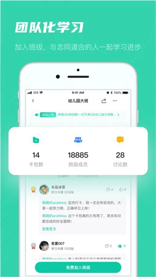 您可加入或者创建感兴趣的学习班级,与志同道合的伙伴一起学习和PK,互相鼓励,共同进步。