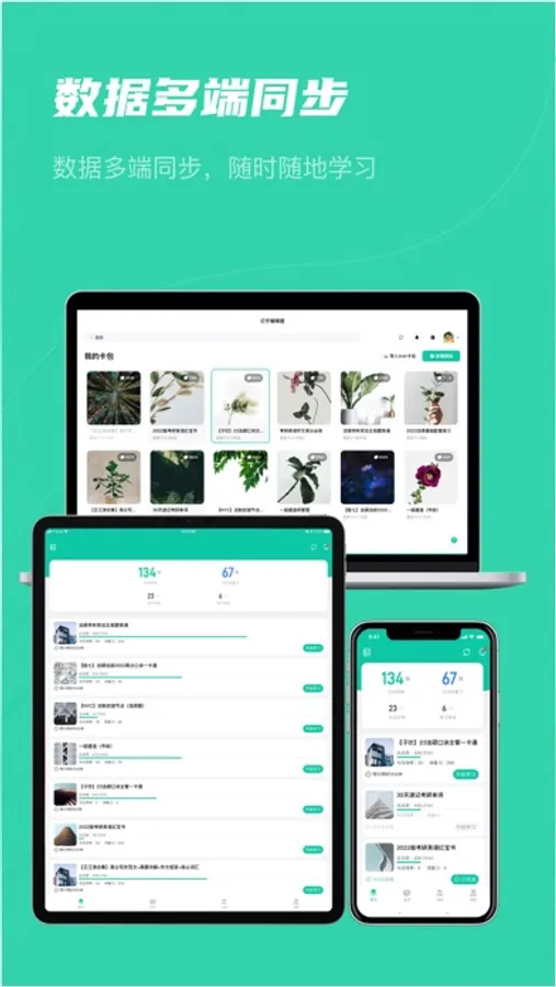 你可以在不同的设备上使用记乎,你的牌组、学习记录、笔记等数据将备份在云端,并在多端设备同步。