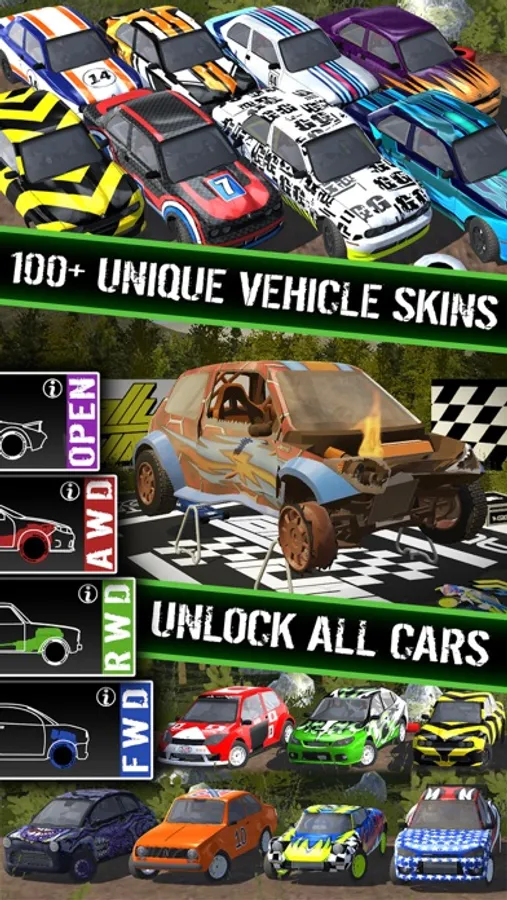 - Collect 100s of car skins to personalize your ride!