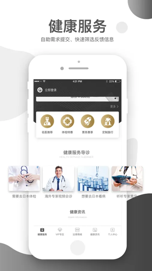 通过AI辅助推荐的形式,提供赴日体检、海外转诊、远程视频会诊、第二诊疗意见的向导式服务,将对接平台后端的上百家医院的数千位专家,变成用户的家庭医生;