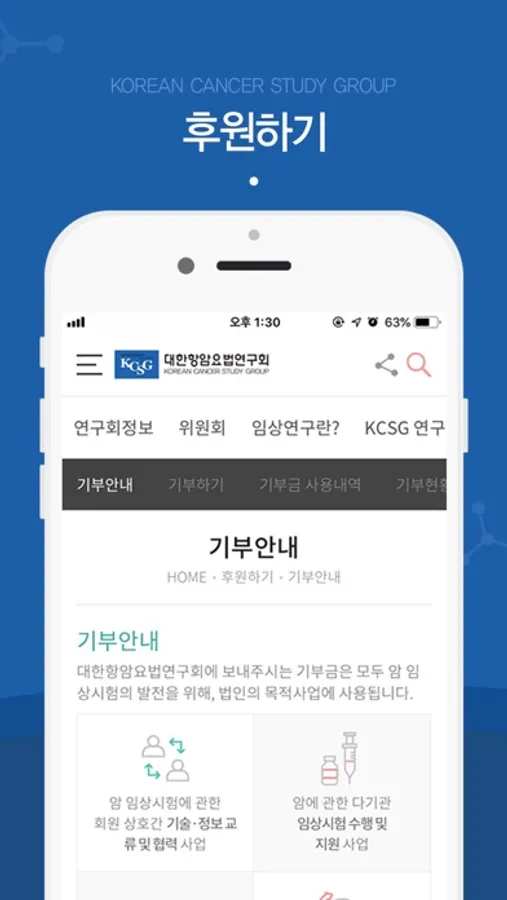 대한항암요법연구회 (Korean Cancer Study Group, KCSG) 앱에서는 암 임상연구 검색 및 연구회 소개, 교육 등의 정보를 제공합니다.