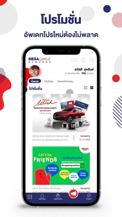 Mega Smile Rewards Member will get exclusive privileges when shop at Megabangna via this application accordingly;