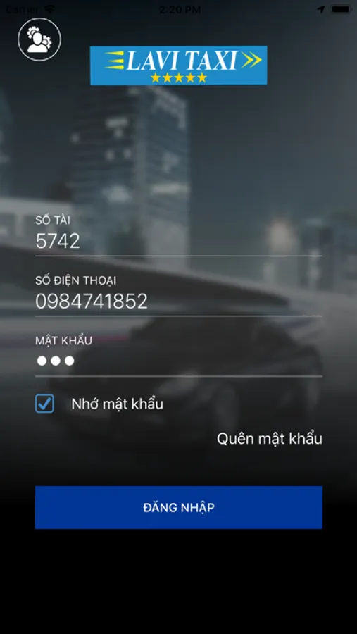 Ứng dụng dành cho tài xế của taxi Lavi.