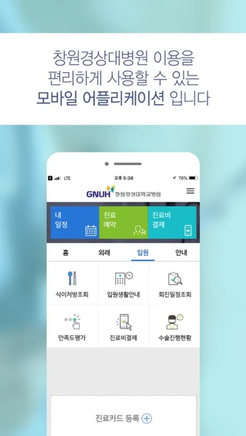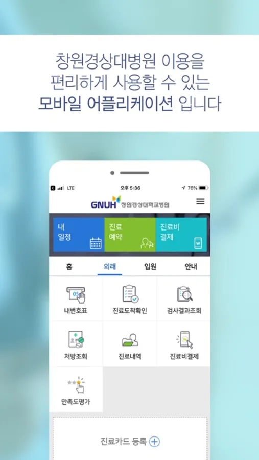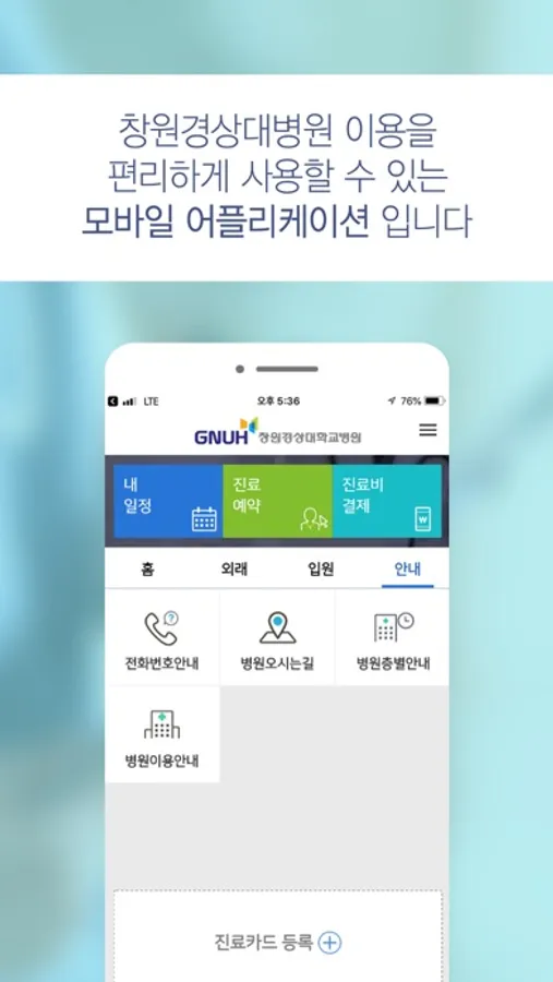 창원경상대학교병원을 편리하게 이용할 수 있는 모바일 어플리케이션 입니다