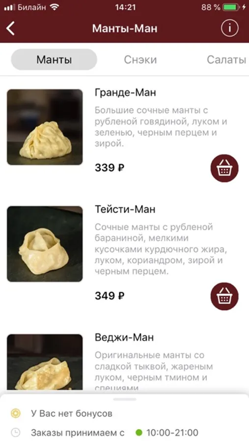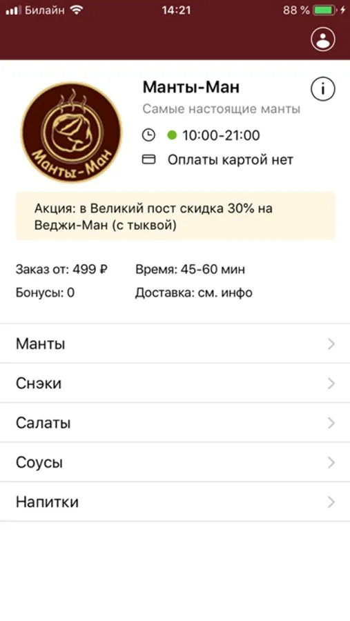 Мобильное приложения для заказа на доставку мантов из компании Манты-Ман.
