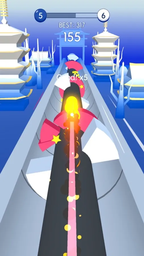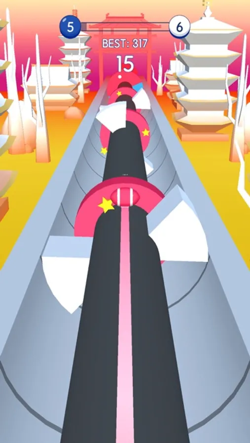 Rotate the spiral pipe to help the ball avoid obstacles and hit the spiral block of the same color.