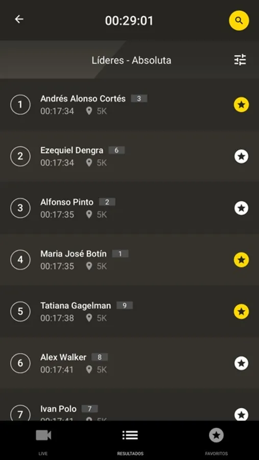 Además, podrás ver de forma rápida cualquier clasificación al instante: por categorías, los primeros corredores por tramo y el último punto alcanzado de los participantes a los que sigas.