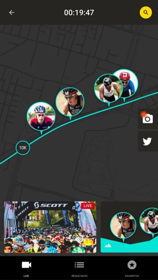 Tuitea directamente desde la app tu experiencia en el evento y sube tus fotos a la galería colaborativa de la prueba. Sigue a tus amigos o atletas favoritos y recibe notificaciones cada vez que pasen por un nuevo punto.