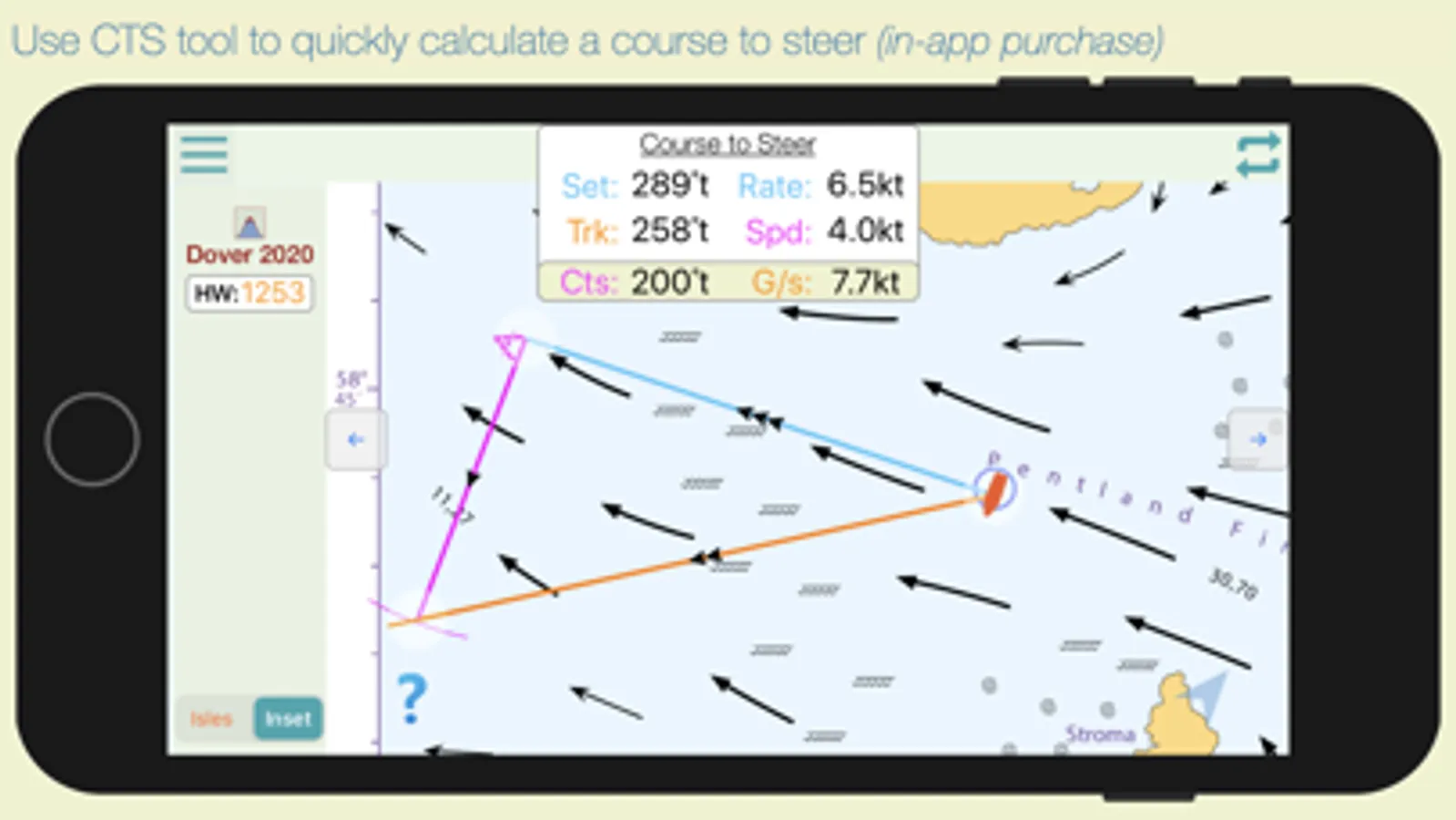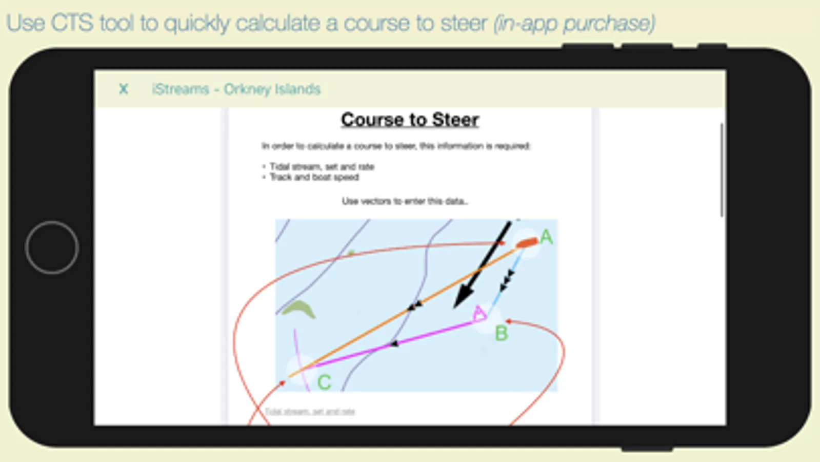 Select the 'CTS' tool to calculate a course to steer. (in-app purchase)