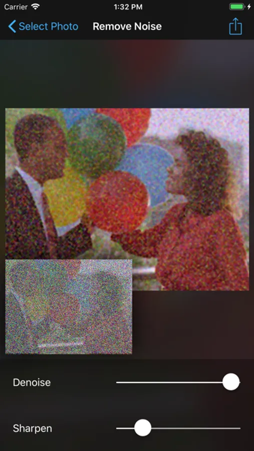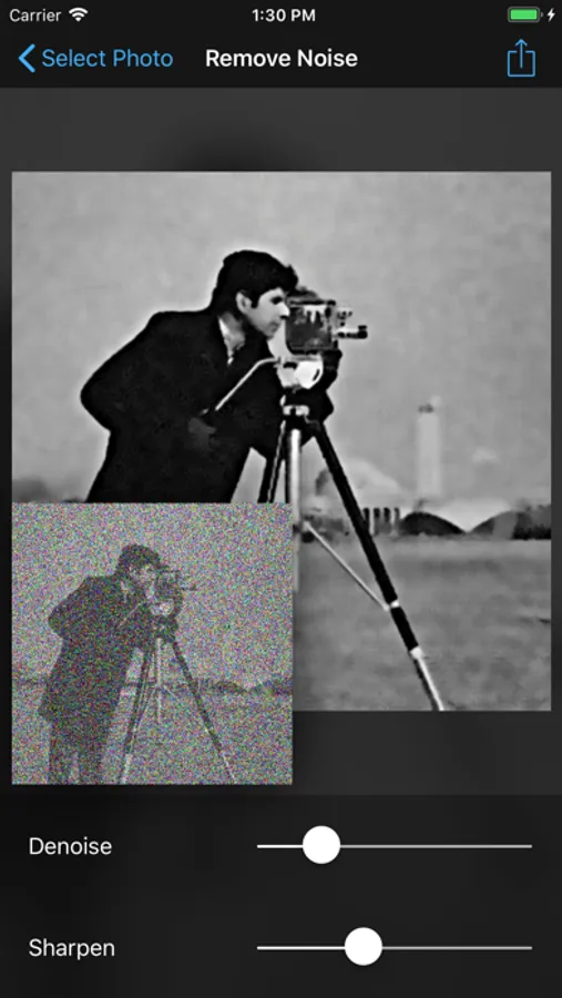 [Pic Denoise] enables you to remove or reduce noise from your photo. You can turn noised and grained old photo to reasonably good looking photo at one step.