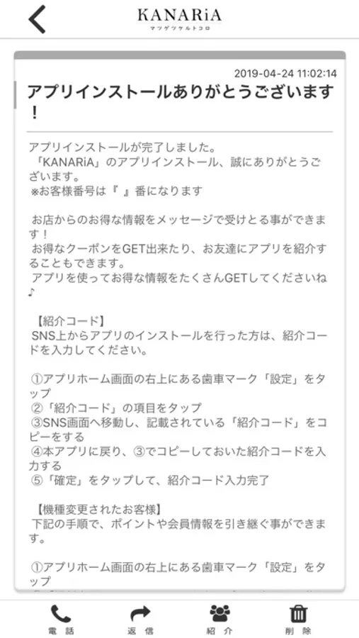 KANARiAのアプリをSNSを通じてお友達に紹介する事ができます。