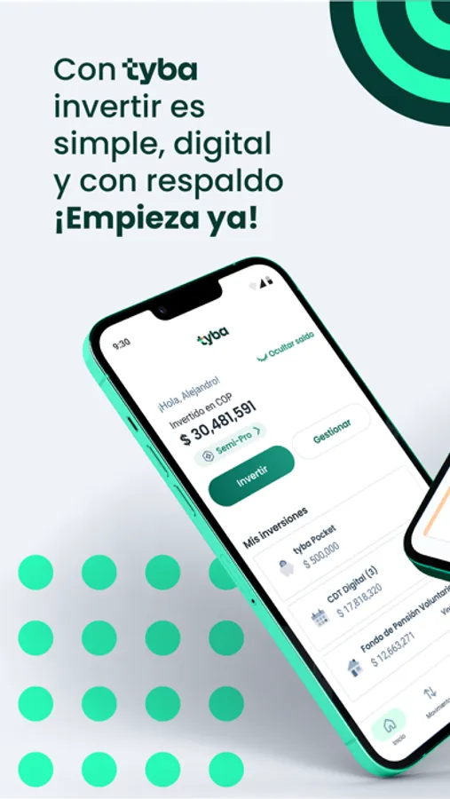 Queremos brindarle a todos los colombianos acceso a las inversiones desde bajos montos. Invertir es fácil con tyba. Invierte digital, fácil y con respaldo; todo desde bajos montos. Inversiones a partir de $100.000 COP.