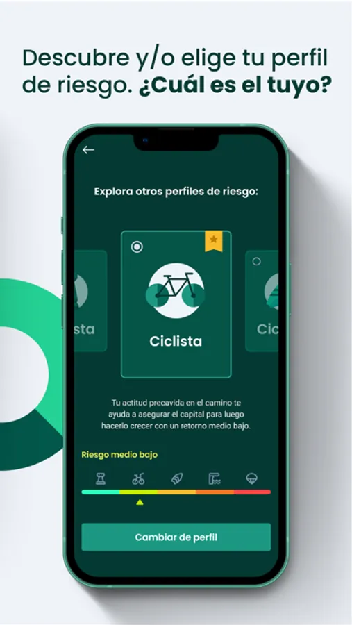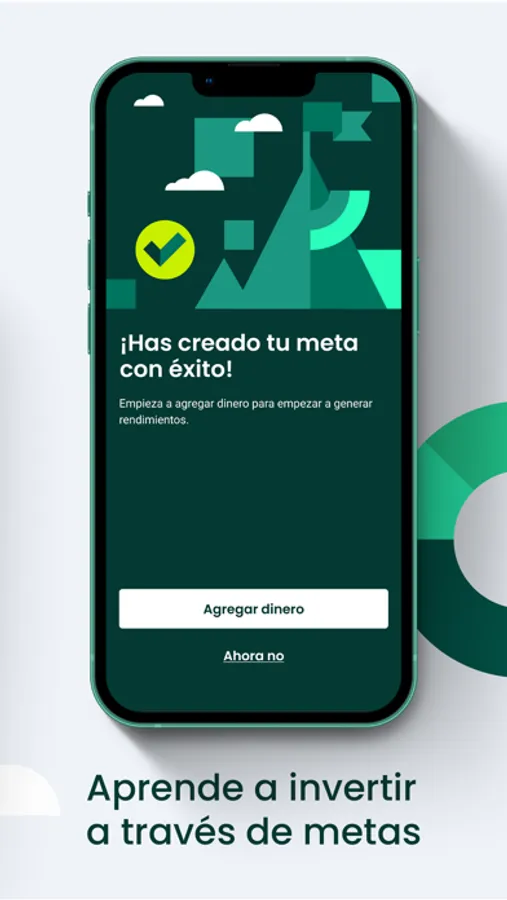 Somos tu aliado a la hora de invertir; por eso, te brindamos una opción de inversión a través de metas, en donde la app se encargará de definir el portafolio ideal para ti, eligiendo fondos de inversión según algunos parámetros y tu perfil de inversionista.