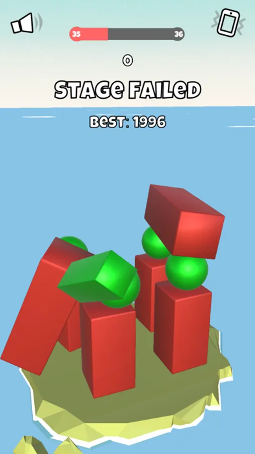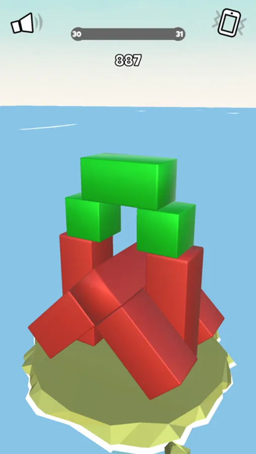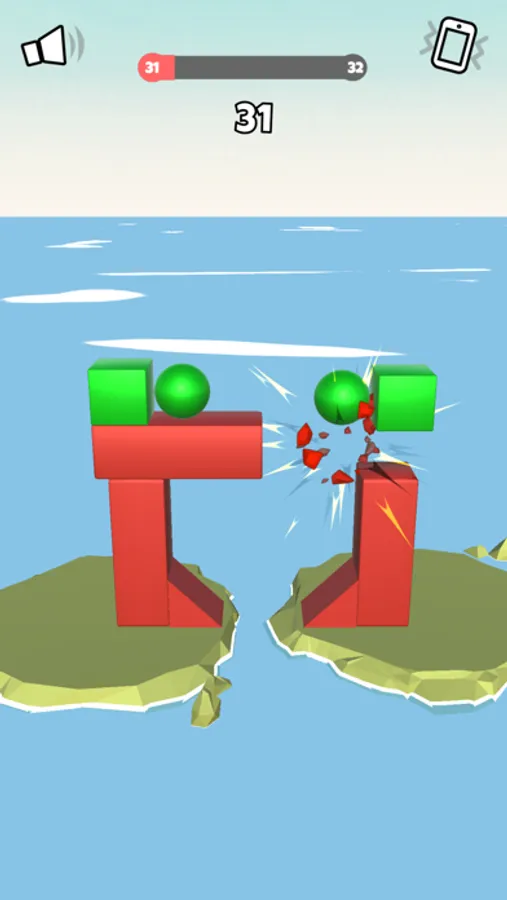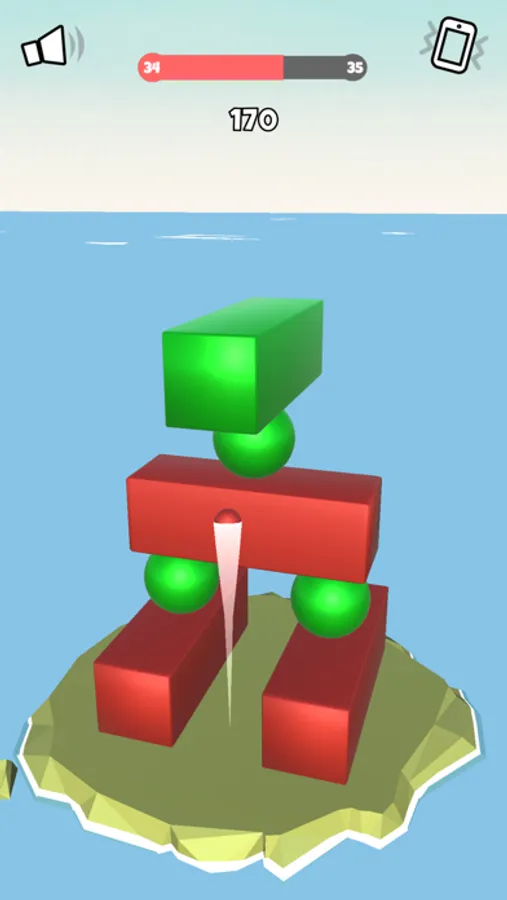 Destroy all the red blocks on the island and don't let the green blocks fall into the water. Just tap the block to shoot and destroy it! Don't worry about the green blocks - they won't pop if you shoot at them.