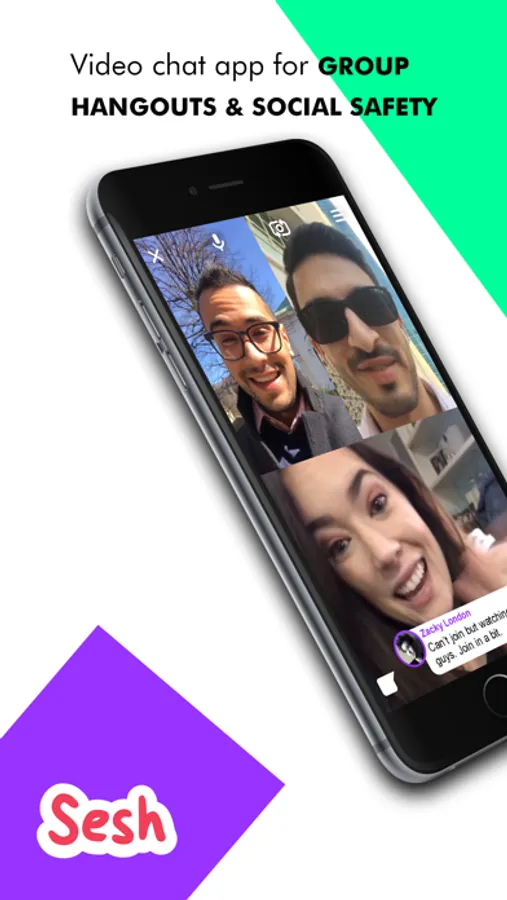 Sesh is a video chat app for group hangouts (a Sesh) and social safety (a Safety Sesh).