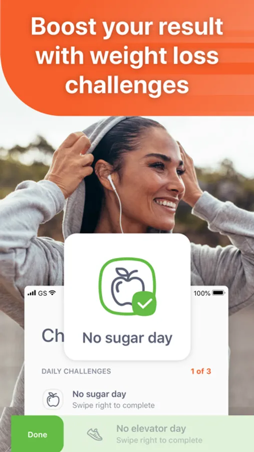- Take 3 of 9 changing daily challenges to get healthier and achieve your final goal faster;