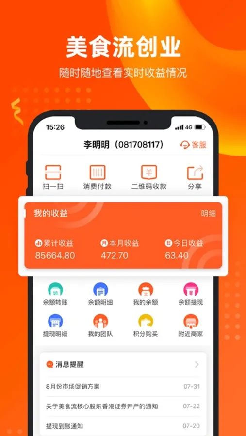 城市合伙人是美食流唯一的代言人,所有城市合伙人都可以享受自己所管辖区域里所有美食街和美食广场的营业分红,轻松获取巨大财富。