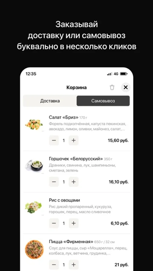 — Быстрый заказ с мгновенным подтверждением через приложение.