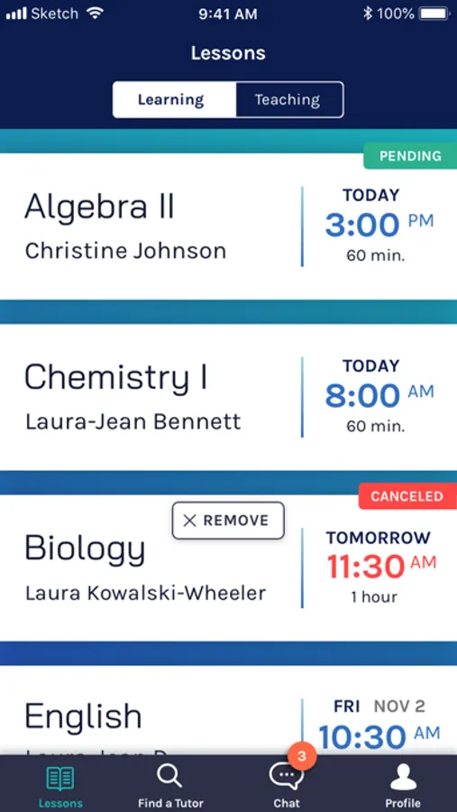 Need to contact your student or tutor? Built in chat allows for communication within the app
