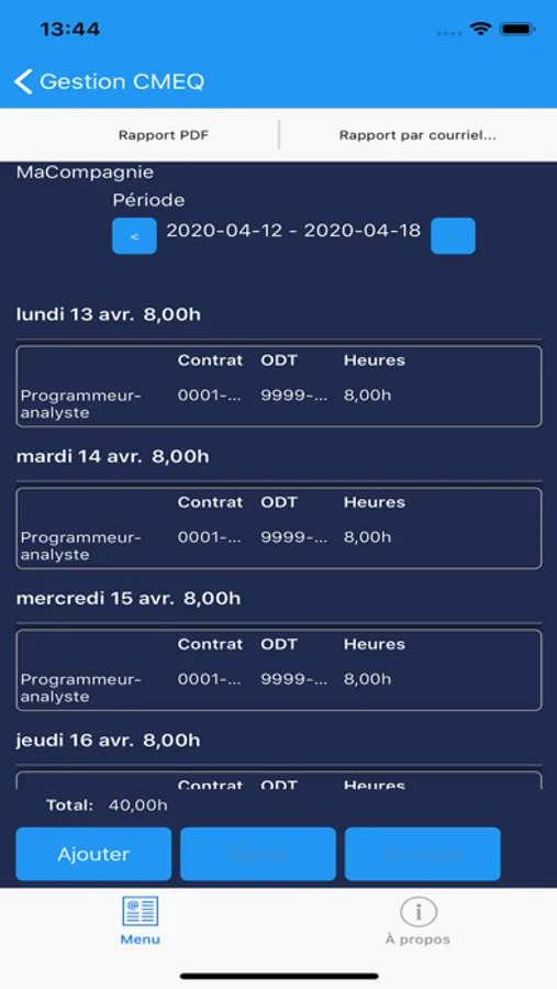 - Possibilité d'extraire un rapport hebdomadaire des heures travaillées par employé en format PDF.