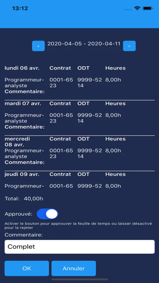 - Approbation des feuilles de temps pour un groupe d'employés pré-défini