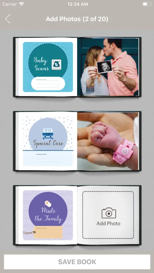 > Simply select which baby photos you want to add to your Baby Milestone Book