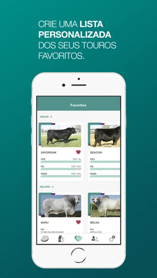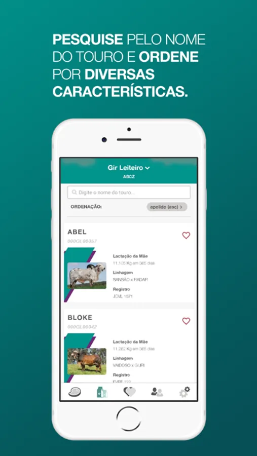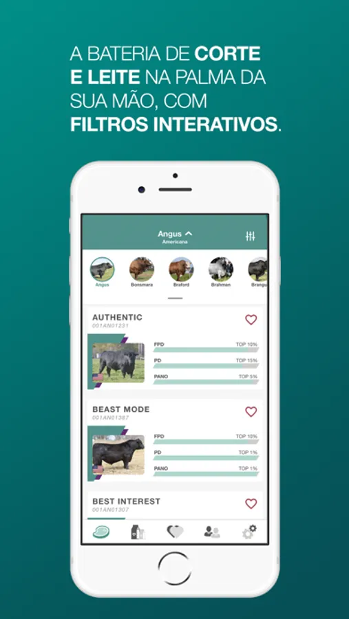 Após o download inicial dos dados, não é necessária uma conexão com a Internet para pesquisar ou classificar os touros, que podem ser buscados pelo seu nome curto ou através de filtros para ver suas DEPs, pedigrees, fotos e vídeos. O aplicativo também permite fazer uma lista personalizada de touros favoritos e buscar pelo representante comercial mais perto de você.