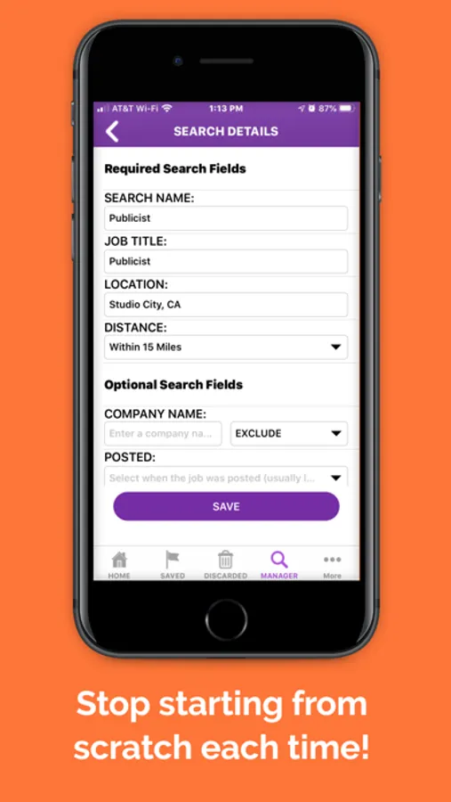 Whenever you do a job search, the app saves the search parameter for you so that when you come back, you don’t have to go through the whole process again, you can simply run the saved search again and the app will show you the updated new results!