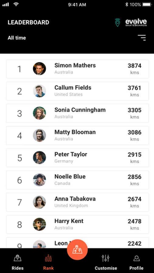 - Filter by week/month/year and by country – see who’s ridden the most in your country this month