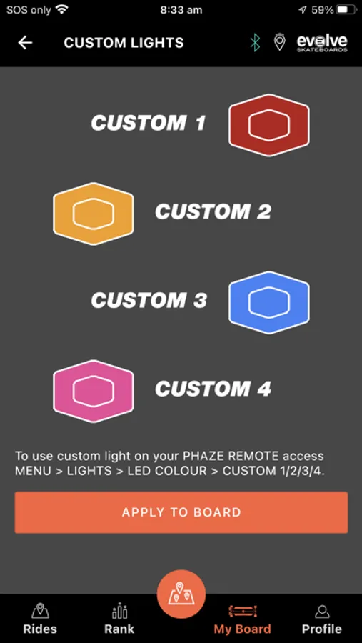 - The new Customise feature is compatible with all Evolve GTR electric skateboards via Bluetooth connection