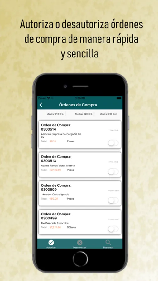 Esta APP te ayuda a tener un control sobre la autorización de pedidos y compras en tu empresa. Compatible con Sistema Agrícola Eclipse