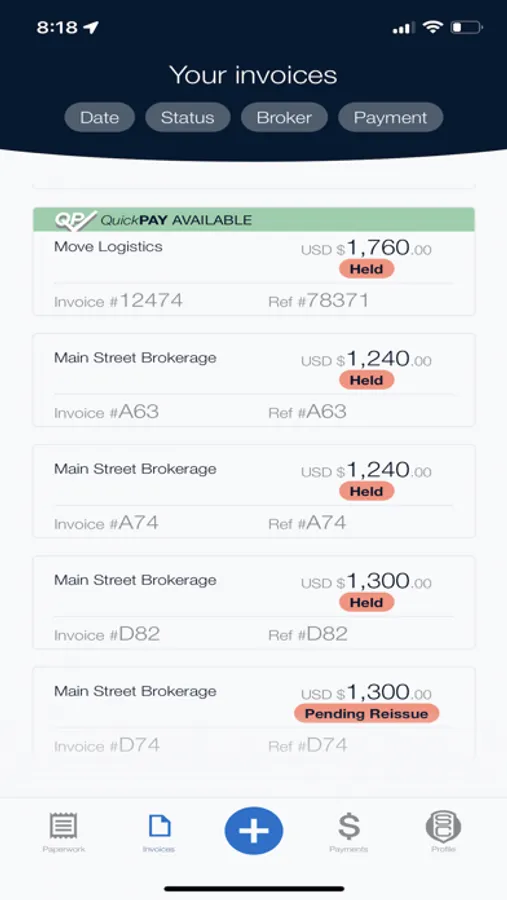 The TriumphPay app allows you to manage your paperwork in one place. We know you’re busy, so we made the payment process easy.