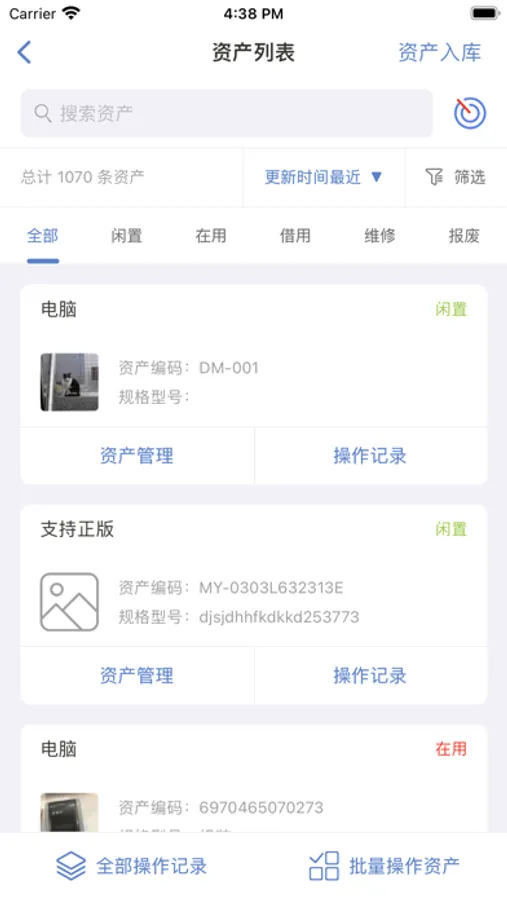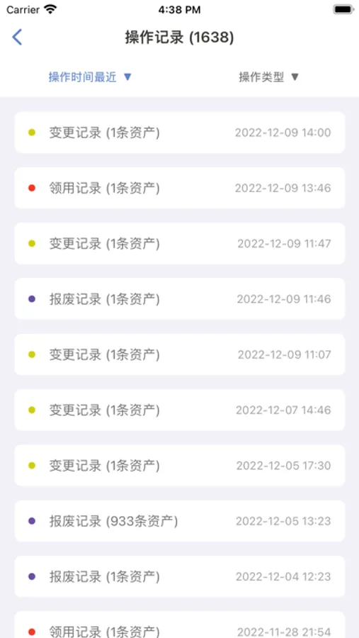 - 支持固定资产的全方位盘点、变更、领用、借用、维修及报废,实时同步