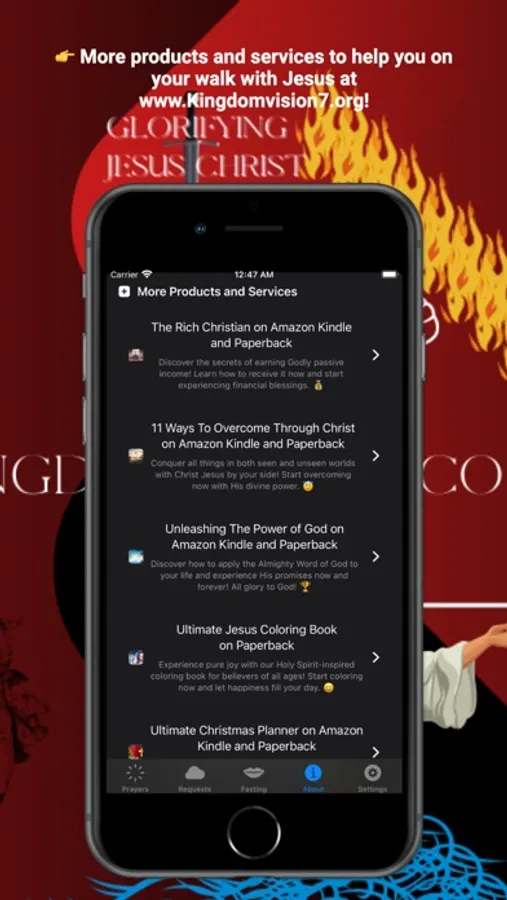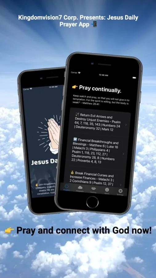 To learn more about the app and our organization, visit our website at https://www.kingdomvision7.org/. And be sure to check out our Terms of Use and Privacy Policy at https://pages.flycricket.io/jesus-daily-prayer-a/terms.html and https://pages.flycricket.io/jesus-daily-prayer-a/privacy.html, respectively.