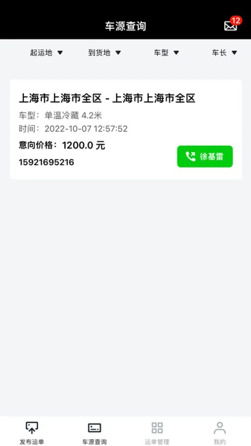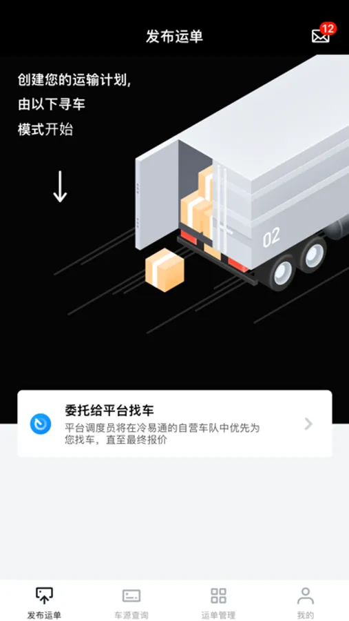 冷易通货主端用于发布货源信息,设定需求的车型、车长、装货时间、卸货时间、装货地点、卸货地点后发布运单,通过匹配后展示给有资格查看相关运单的经纪人。