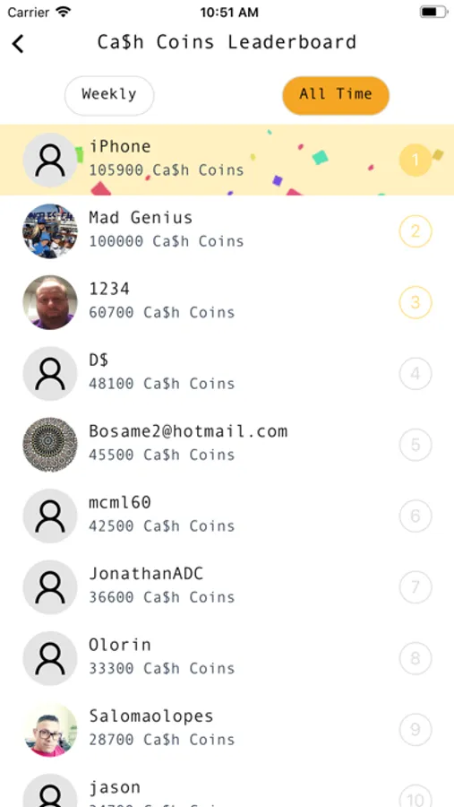 Earn 5000 Ca$h Coin for winning the weekly contest