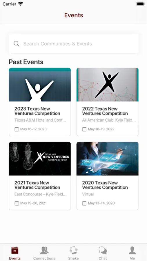 Official mobile app for the Texas A&M New Ventures Competition (TNVC)
