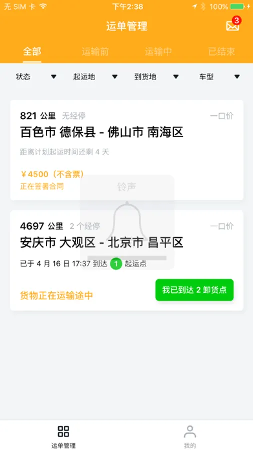 司机端用于司机参与货运过程。