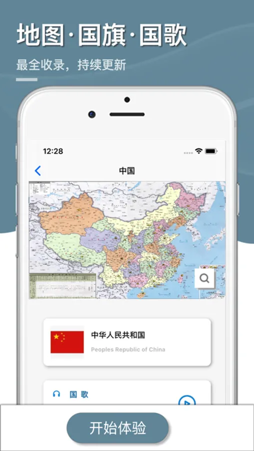 The contents include map, national flag, national anthem, population, area and capital of each country