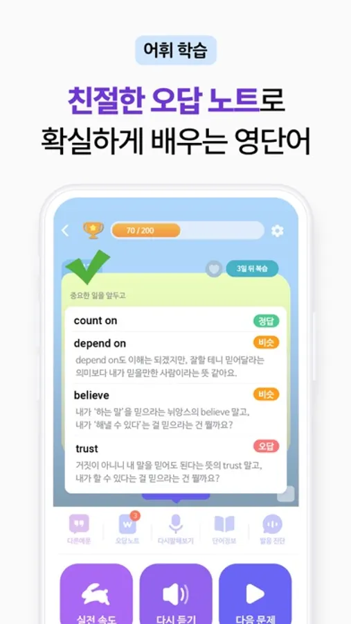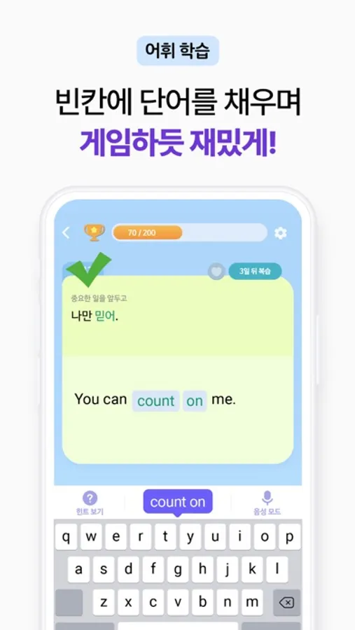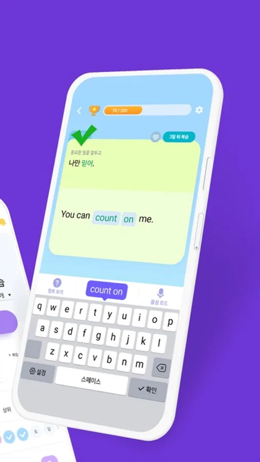 스피킹 모드로 학습하면 회화 연습도 할 수 있어요.