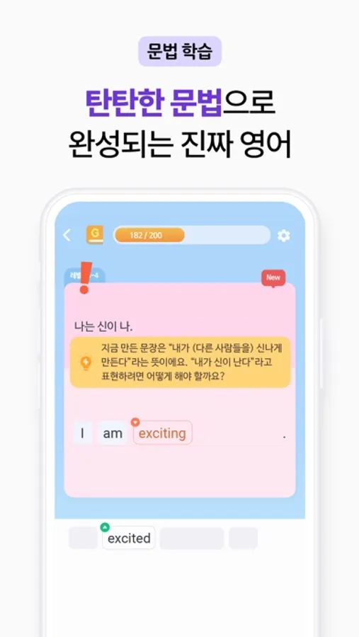 2. 문법 학습: 직접 카드를 배열하여 문장을 완성하고,