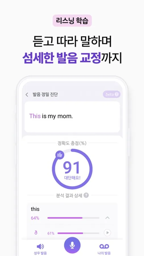 4. 리스닝 학습: 영어 듣기, 영어 말하기로 발음과 억양을 섬세하게 체크할 수 있어요.