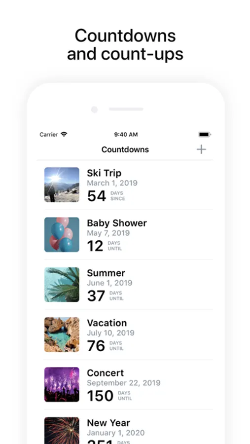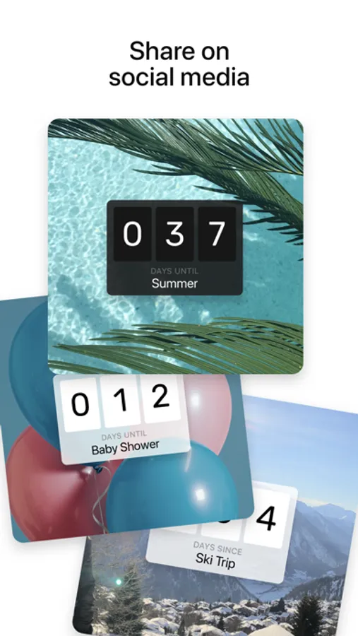 Count down the days to upcoming events! Create beautiful countdowns, customize the theme and background, and share with your friends on social media. The app is completely free and offers unlimited countdowns and count-ups!