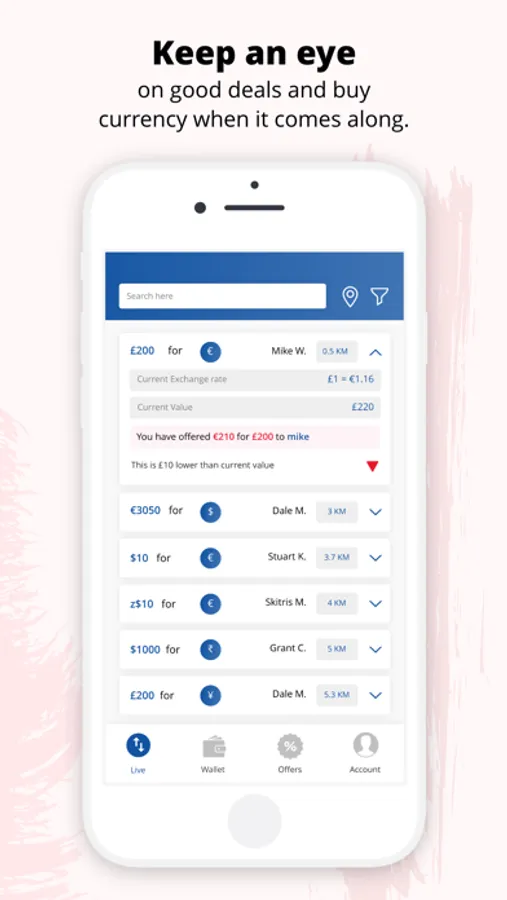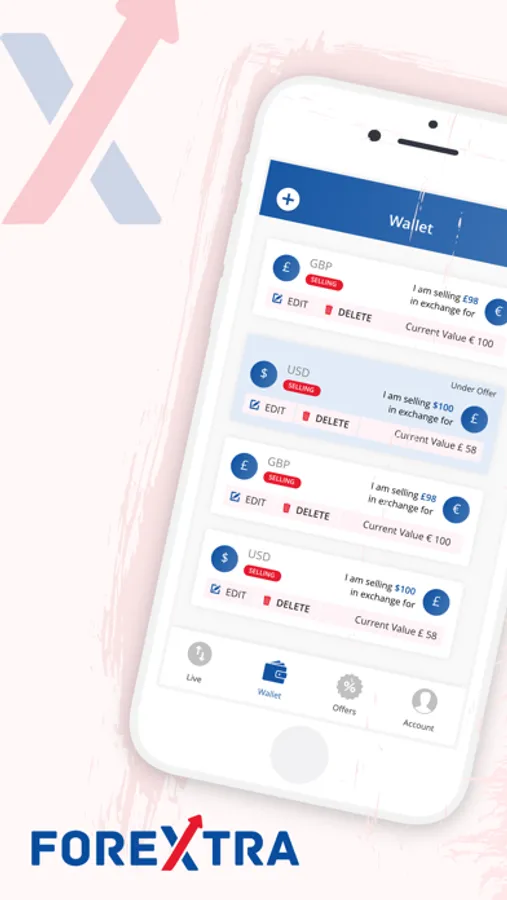Forextra is a unique app that allows users to buy, sell and make offers on currencies with other individuals. You can search by your location or a set location to see what is available to buy and offer on. When selling any excess currency you may have in your wallet you can set a price you want to achieve. Once an offer has been made by you or you have accepted an offer on currency you can chat in message system and agree to meet and exchange your currencies in a safe place.